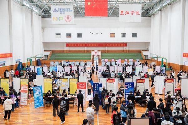 江苏省百校联动就业活动暨三江学院2024届毕业生春季校园双选会活动于3月28日上午在铁心桥校区体育馆中心球馆和风雨操场举办。校长吴中江,党委常务副书记、副校长周更生,副校长王芳,有关职能部门负责人,二级学院领导、专业课教师、辅导员等到招聘会现场与用人单位与会代表洽谈,了解用人需求,与应聘毕业生交谈,我校3000余名2024届毕业生和非毕业班在校生参加。同时,如皋市人社局、海安市人社局、高淳区人社局等相关领导也组织用人单位参加了本次招聘活动。