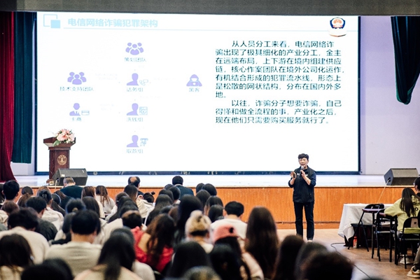 4月28日下午,我校保卫处和学生发展服务中心联合组织开展防范电信网络诈骗活动,特地邀请了南京市公安局内保支队首席反诈专家陈红燕警官为我校师生做了一场以《同学,电信网络诈骗就在你身边!》为题的反诈专题讲座。讲座由保卫处处长刘松伟主持。