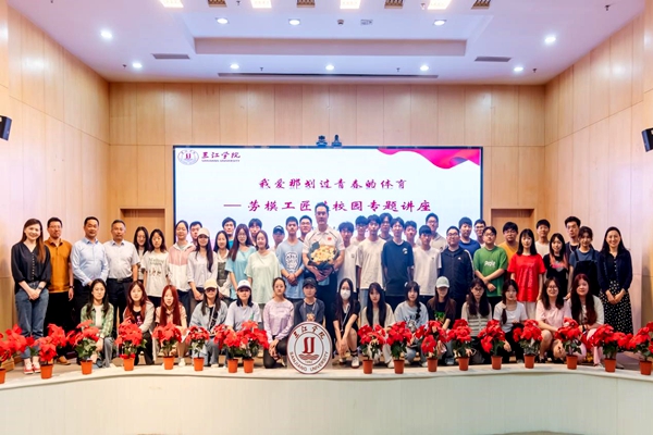 杨业琴带领同学们和世界冠军做了亲切互动,并激励同学们向冠军学习,争做健康积极的大学生,弘扬劳模精神,凝聚奋进力量,努力践行社会主义核心价值观。