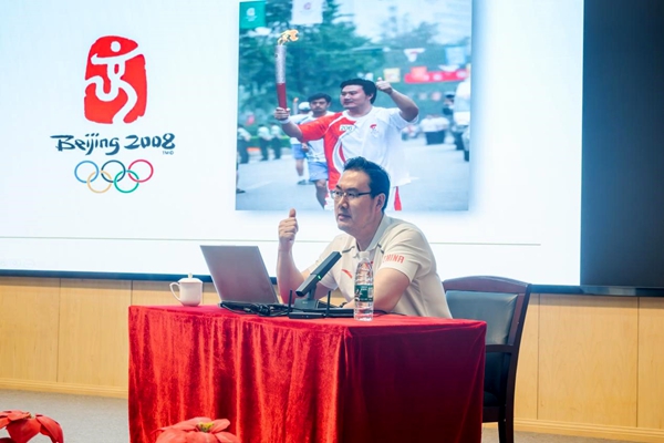崔文华分别从理想、信念以及苦难等方面分享了冠军的成长历程和劳模对事业不懈的追求。他说:“我骄傲,我曾是运动员;我自豪,我曾在奥林匹克旗帜下奋勇向前,永攀高峰!我将永远热爱那划过青春的体育!”体育改变人生,奋斗铸就辉煌,感恩体育馈赠,每一步都是汗水与泪水的堆砌,都伴随着鲜花和掌声。他勉励广大师生要不畏浮云遮望眼、风物长宜放眼量,理想是飞向成功的翅膀,信念是开启成功的钥匙,苦难是成就精彩人生的基石。