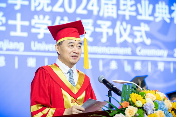吴中江代表学校向顺利完成学业的6109名毕业生送上最衷心的祝贺和最美好的祝福。他对毕业生们说:毕业季,是见证收获的时节,时间见证成长,奋斗成就梦想,你们用四年的勤勉交出了如今优秀的毕业答卷,终于学有所成,可喜可贺;毕业季,是憧憬未来的时节,你们将走出校园,开启新的人生旅程,报效国家,服务社会,实现新的超越,请带上祝福与希望,去开创属于你们的全新的精彩世界;毕业季,是表达感恩的时节,请带着饮水思源的感恩之心,记住师长及同窗的关爱和奉献,他们将继续呵护你在人生大道上行稳致远;毕业季,是伤情离别的时节,离别同样美丽,因为它成就了我们美好的记忆,成为我们再次欢聚的序曲。