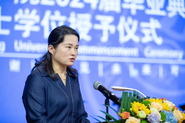 副校长唐万宏宣读《关于授予2024届毕业生学士学位的决定》《关于表彰2024届优秀毕业生的决定》
