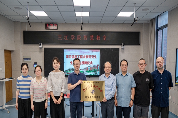 储吉向来宾简要介绍了三江学院外国语学院的专业设置、办学及考研情况。吴鹏飞副书记介绍了南京信息工程大学的办学历史、学校概况和文学院的情况,并向郑玉琪授予“南京信息工程大学研究生生源基地”牌匾。