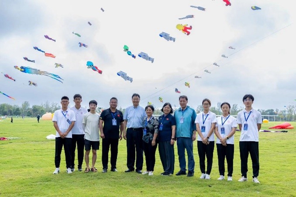 与中国风筝协会秘书长侯秋玲女士(左六)、江苏省风筝协会秘书长谢小丽女士(右五)合影