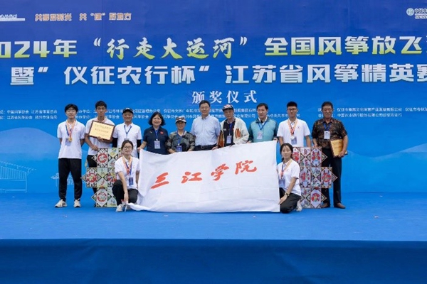 2024年“行走大运河”全国风筝活动暨江苏省风筝精英赛于9月13日-15日在仪征枣林湾举行。代表江苏高校参赛的三江风筝队发挥出色,荣获了体育道德风尚奖、最佳工艺奖、放飞表演奖以及滚地龙、夜光龙等七个竞赛项目的前三名,成为本站比赛的大赢家。