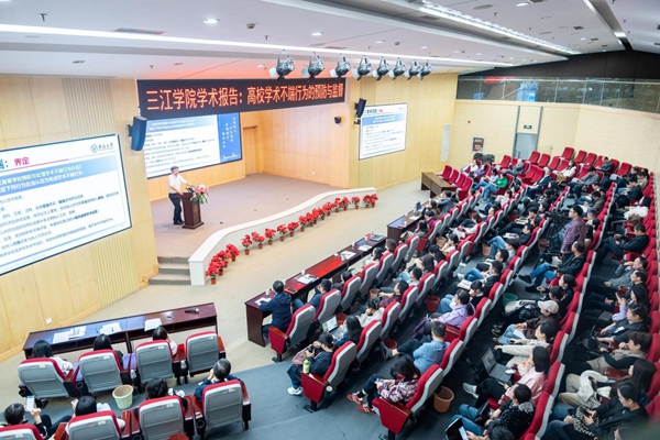 为进一步加强我校学术诚信建设,宣扬恪守学术规范、筑牢学术道德底线的精神,10月30日,我校科研处联合教师发展中心邀请东南大学学术委员会秘书处熊文教授作题为“高校学术不端行为的预防与监督”的学术报告。报告会由科研处处长吴敏珏主持,各二级教学单位及相关职能部门部分教职员工参加了报告会。