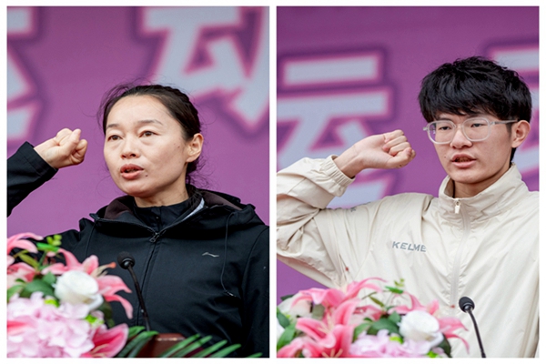 来自体育部的谷娜娜老师作为裁判员代表,计算机科学与工程学院葛路炜同学作为运动员代表,在全体师生的注视下庄严宣誓。