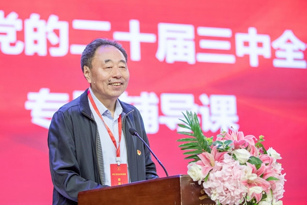 谢春涛以《深入学习贯彻习近平总书记关于全面深化改革的一系列新思想、新观点、新论断和党的二十届三中全会精神》为题,从党的二十届二中全会以来党和国家事业取得的重大成就,党的二十届三中全会的主题,进一步全面深化改革的重要性和必要性,习近平总书记关于全面深化改革的一系列新思想、新观点、新论断,进一步全面深化改革的重大原则以及进一步全面深化改革的重大举措等六个方面进行了系统宣讲和深入阐释。谢春涛强调,习近平总书记在全会上发表的重要讲话,对于动员全党全军全国各族人民团结奋斗、锐意进取,以进一步全面深化改革开辟中国式现代化广阔前景、实现第二个百年奋斗目标、实现中华民族伟大复兴的中国梦具有重大意义。谢春涛指出,要更加深刻领悟“两个确立”的决定性意义,更加自觉地做到“两个维护”,深入学习领会习近平总书记关于全面深化改革的一系列新思想、新观点、新论断和党的二十届三中全会精神,积极努力地落实党中央决定的各项改革举措,为中国式现代化提供强大动力和制度保障。