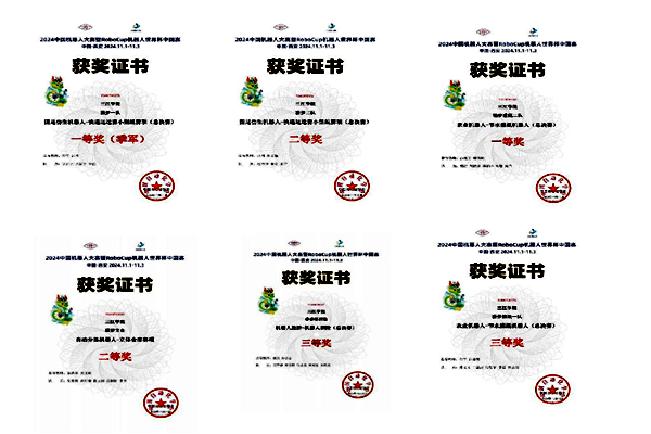 近日,2024年中国机器人大赛暨RoboCup机器人世界杯中国赛落下帷幕,我校学子凭借扎实的专业技能和出色的创新能力,在比赛中勇敢应对挑战,斩获全国一等奖2项、二等奖2项、三等奖2项。
