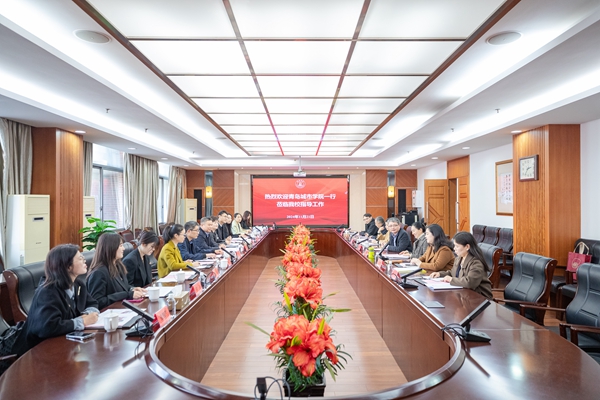 11月21日,青岛城市学院党委委员、副校长、工会主席赵连营等一行来访我校。党委副书记沈军军,工会主席杨业琴和相关工会委员在行政楼A404会议室接待了来访客人。