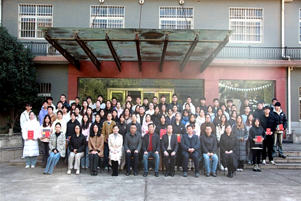 表彰大会结束后,与会领导与获奖学生代表合影留念。