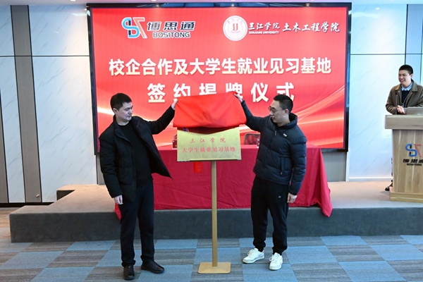 此次校企合作签约暨揭牌仪式的成功举办,是企业与高校携手合作、提升企业核心竞争力的战略举措,标志着三江学院土木工程学院与江苏博思通新材料有限公司在校企合作的道路上迈出了坚实的一步。未来,双方将依托实习基地,进一步加强在人才培养、技术研发和项目合作等方面的交流与协作,努力实现校企资源共享、优势互补,共同推动产教融合向纵深发展,为行业培养更多高素质应用型人才。