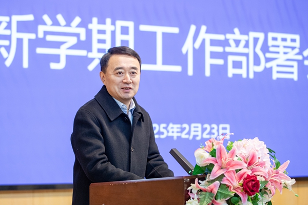 她对新学期重点工作任务进行了部署:一是要以党的建设为统领,推进党建与事业融合发展,凝心聚力抓党建、固根本,持之以恒抓思想、强信念,坚持不懈抓纪律、严作风。二是要以立德树人为根本,全面提升教育教学质量,持续擦亮育人底色,不断夯实育人基础,切实优化育人生态,提升服务学生实效。三是要以人事制度改革为抓手,逐步提升师资队伍整体水平,持续优化教师队伍结构,全面提升教师教学科研能力,不断深化人事分配制度改革。四是要以产学研用贯通为目标,全面提升科研创新能力,提升学科建设水平,深化产学研用贯通,提升科研创新实力。五是要以提升效能为保障,持续改善办学环境条件,持续改善办学条件,提升公共服务水平,着力建设平安校园。六是要以迎评促建为宗旨,全力冲刺本科教育教学审核评估,确保思想认识到位,确保评前准备到位,确保责任落实到位。