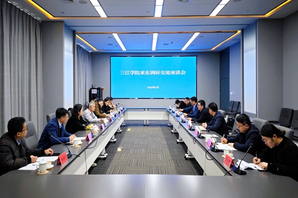 座谈会上,调研团与当地政府及企业代表就技术攻关、平台共建、人才培育等议题展开深入交流。鲍张智系统介绍了东台经济社会发展情况,重点阐释了东台“三新两特”产业发展战略。我校科研处围绕应用型科研服务地方经济发展主题,介绍了学校学科专业优势和应用型科研特色,重点报告了学校在与东台产业契合的智能制造与工业互联网、新能源与低碳技术、现代农业与环保科技、数字经济与智慧服务四个方面的科技研发能力及成果,希望在联合技术攻关、共建创新平台和人才精准输送等方面加强深度合作共建。