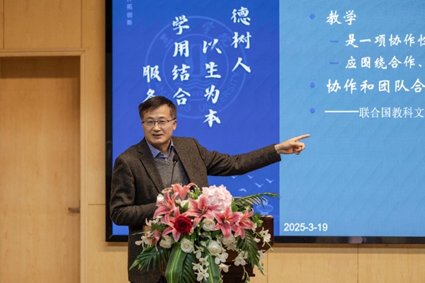 教务处处长陈新民教授作《加强建设,提升效能,打造特色》报告,围绕“为何建”“怎么建”“建什么”三个维度展开分析。他结合教学组织化的必要性、基层教学组织建设背景和目的意义以及2025年学校教学工作重点,强调指出,各基层教学组织要系统规划建设方案,突出建设重点,切实提升工作效能,在确保人才培养方案有效实施以及彰显应用型人才培养特色上贡献智慧。