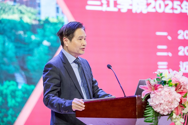 理事长、校党委书记封超年作题为《增强时代性 科学性 系统性 不断推进学校事业高质量发展》的讲话。他指出,“两代会”以习近平新时代中国特色社会主义思想为指导,全面学习贯彻全国两会及全国、全省教育大会精神和教育强国、强省建设规划纲要,是在“十四五”规划收官在即、“十五五”规划谋篇布局、全面冲刺本科教育教学审核评估的关键时刻召开的一次重要会议,是一次统一思想、汇聚力量、改革奋进的大会。他强调,要继往开来,与时俱进,增强学校顶层设计的时代性。要以习近平新时代中国特色社会主义思想为指导,以《民办教育促进法》及其实施条例为法律遵循,以社会需求为导向,努力办人民满意的大学。他指出,要转变观念,创新思路,增强办学举措的科学性。要根据应用型办学定位,完善以能力为重的人才培养特色;要研判三江学院的发展阶段,逐步建设以应用研究与技术开发为优势的科研与服务区域特色;要深度理解教育部对民办高校教师组成结构的要求,用好南京区位优势,建设好数量适宜、结构合理、质量优良、应用特色明显的师资队伍。他强调,要统筹兼顾,稳中求进,增强治校方略的系统性。要客观分析三江学院的发展历程,尊重历史,立足当前,继往开来,创新发展;全面完善人事制度,突出人力资源配置优化、薪酬制度改革;坚持按制度和规则办事,制度面前人人平等,坚守底线,不踏红线,不碰高压线。