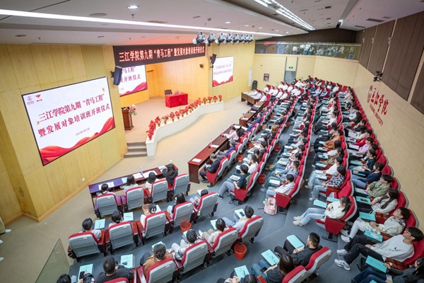 4月15日,三江学院第九期“青马工程”暨发展对象培训班在学术报告厅顺利开班。校党委书记封超年参加开班仪式,并为第九期青马学员讲授了第一课——《赓续红色基因,厚植青年担当》。校党委常务副书记、副校长、党校校长周更生主持开班仪式。党委办公室、党委组织部、马克思主义学院、校团委主要负责同志,第九期“青马工程”培训班全体学员及第八期学员代表参加了开班仪式和培训。