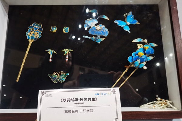 扬州大学党委书记丁建宁致辞后,相关领导与少数民族学生代表共同登台,启动江苏省第三届“铸牢中华民族共同体意识·高校在行动”系列活动。启动仪式后,扬大师生共同带来“同心合韵共筑梦”民族文化展演。同期在扬大文体馆还举办了“承・民族匠心”非遗校园行活动,现场展出各高校师生的非遗作品,当地的相关非遗传承人也带来精彩展示,让参观师生深切感受到中华文化的深厚内涵与独特韵味。我校选送的两幅非遗绒花作品由王慧老师带领团队制作完成,均在现场得到展出。