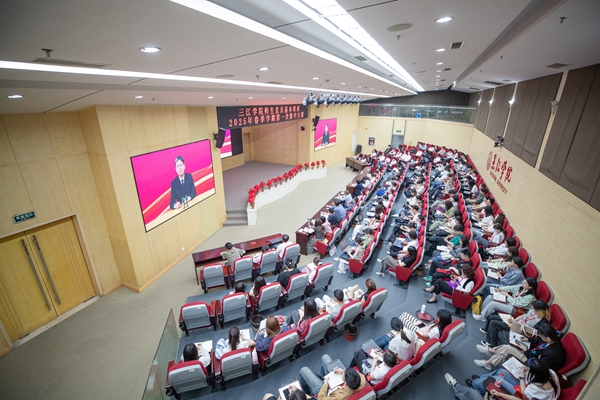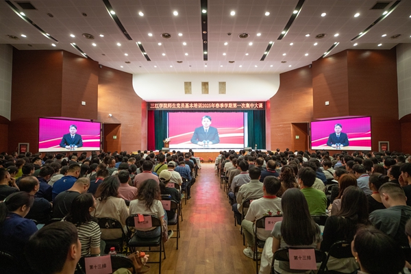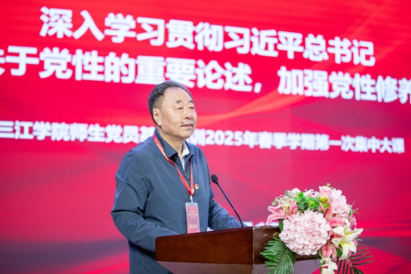 5月12日,三江学院举办全校师生党员教育培训2025年春季学期第一次集中大课。全校师生党员共同听取中央党校(国家行政学院)教育长张忠军同志主讲的“深入学习贯彻习近平总书记关于党性的重要论述,加强党性修养”专题辅导课。培训主课堂设在三江会堂,学术报告厅、南校区、东校区分别设置了分课堂。全校1000多名师生党员集中参加了培训。理事长、党委书记封超年主持培训并讲话。