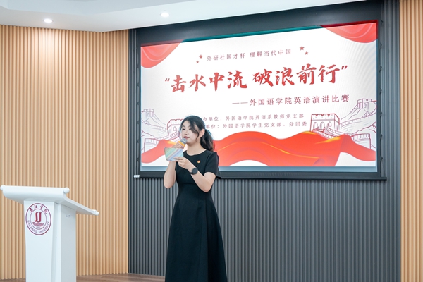 本次主题英语演讲比赛紧扣2025“外研社·国才杯”“理解当代中国”全国大学生外语能力大赛演讲赛主题--“Strike the Waves击水中流 破浪前行”。决赛分为主题演讲与提问两个环节。此前,外国语学院于4月24日举办了初赛,经过一轮紧张而精彩的比拼,专业评委们秉持公正客观的原则,从27名初赛选手中评选出12名选手参加决赛。为确保选手们能够充分展现自己的实力,英语系教师党支部为每一位决赛选手配备了专业的指导老师作赛前指导。