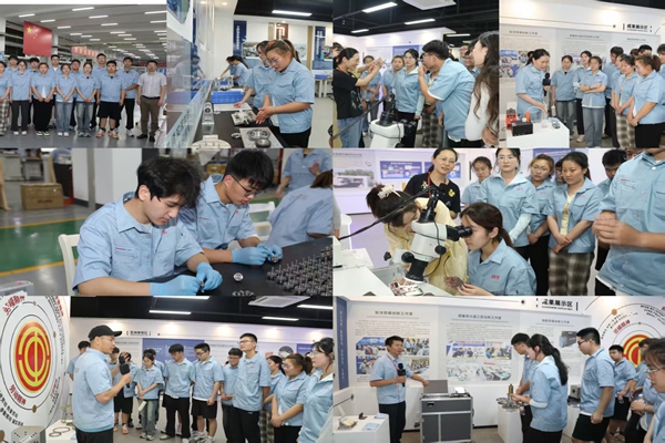 大国工匠、全国劳动模范顾春燕和她的同事向同学们展示了堪称艺术的金丝键合工艺,比头发丝还细10微米的金线精准连接到芯片内部器件上。这要求操作者手稳如磐石,控制金丝弧度完美适配芯片布局。“这个过程对技术和耐心要求极高,新手需要数月打基础,成长为‘老师傅’更要经年累月地实践。”顾春燕的讲解让同学们对“精益求精”有了更具象的认知,也明白了大国制造背后有无数个默默无闻却至关重要的“手艺人”的辛勤付出。