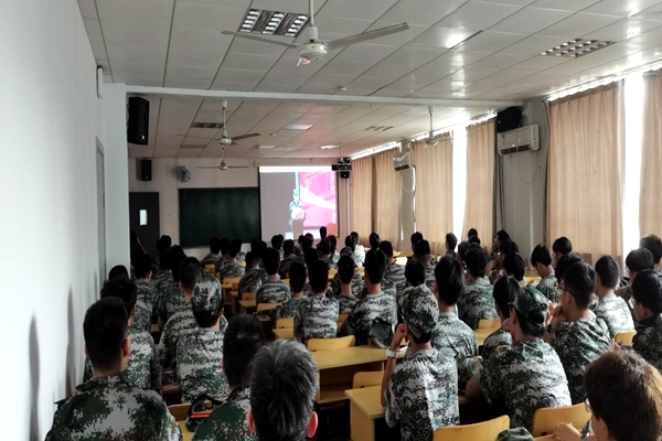 大会在庄严的国歌声中拉开帷幕,全场肃立致敬。会上,周更生向军训团授旗,部队带队领导、军训团团长发言并对军训工作做了有关要求,教官代表、新生代表分别作了交流发言。