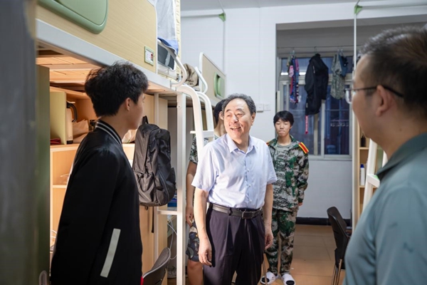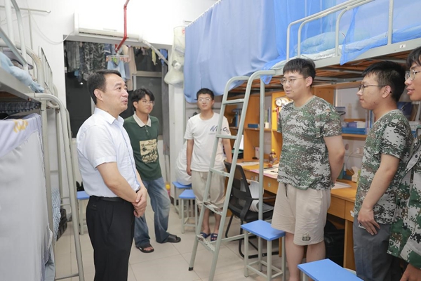 走访期间,校领导聚焦新生适应情况,“老家是哪里的?”“食堂的饭菜还习惯吗?”“军训节奏能跟上吗?”“集体宿舍生活适应吗?”“有没有遇到需要学校帮忙解决的问题?”一句句温暖的问候,瞬间拉近了与新生的距离,让同学们充分感受到大家庭的温暖。校领导鼓励大家尽快转变角色,适应自主学习模式与集体生活节奏,多参与社团活动、学术讲座、志愿服务等,在实践中锻炼能力、拓宽视野,同时要珍惜宝贵的大学时光,敢于探索、勇于创新,在探索中找到兴趣方向,提前做好人生规划,不仅要扎实学好专业知识,更要注重培养综合能力,让大学时光成为成长路上的“充电站”。