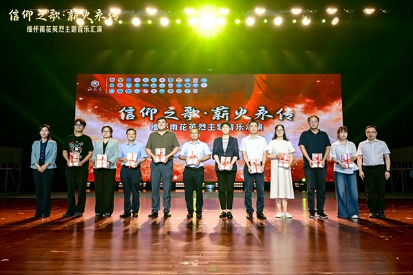 2025年9月27日,在第十二个烈士纪念日来临之际,雨花台“大思政”联盟在南京雨花剧院举行“信仰之歌·薪火永传”——缅怀雨花英烈主题音乐汇演暨“大思政课”实践教学基地联盟扩盟仪式。文新院作为该联盟第三批新成员代表应邀参会。由院长周建忠教授带队,学院党总支书记詹悦兰和雨花英烈精神研究院办公室主任汤泠出席仪式,并现场观摩了音乐汇演。