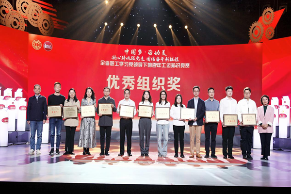 备赛期间,队员们克服教学科研管理工作的压力,全身心投入训练。在校工会指导下,参赛老师潜心研读《中国工人运动史》《习近平关于工人阶级和工会工作论述摘编》等学习资料,深入理解党领导下的工人运动历程。四位老师多次利用业余时间进行集中研讨、模拟演练,展现出严谨治学、团结协作、勇于拼搏的三江风貌。竞赛现场,队员们沉着应战,配合默契,展现出丰富的知识储备和深刻的理解,赢得评委和观众认可。最终,我校代表江苏省教育科技工会委员会荣获江苏省总工会颁发“优秀组织奖”。