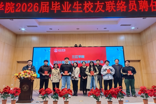 发展委员会(继续教育与培训处、校友会办公室)办公室主任王益明宣读了《关于聘任林奕杰等169名同学为三江学院校友联络员的决定》,明确169名学子的聘任资格与职责。随后,各二级学院校友工作负责人依次上台,为联络员代表颁发聘书,鲜红的聘书不仅是身份的认证,更承载着学校对校友工作的期待。