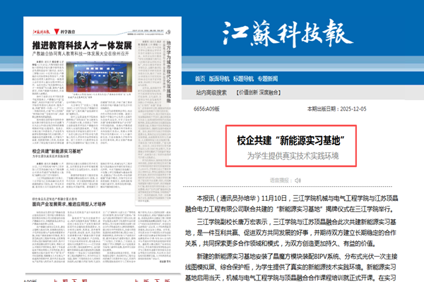 本报讯(通讯员 孙培华)11月10日,三江学院机械与电气工程学院与江苏顶晶融合电力工程有限公司联合共建的“新能源实习基地”揭牌仪式在三江学院举行。 三江学院副校长唐万宏表示,三江学院与江苏顶晶融合此次共建新能源实习基地,是一件互利共赢、促进双方共同发展的好事,并期待双方建立长期稳定的合作关系,共同探索更多合作领域和模式,为双方创造更加持久、有益的价值。 新建的新能源实习基地安装了晶魔方模块装配BIPV系统、分布式光伏一次主接线图模拟屏、综合保护柜,为学生提供了真实的新能源技术实践环境。新能源实习基地启用当天,机械与电气工程学院与顶晶融合合作课程培训就正式开课。在实习基地安装晶魔方,不仅能让学生接触到行业最新技术,更能通过“自由思考+专业创新碰撞”的教学模式,引导学生针对系统装配、性能优化、场景适配等问题开展研究,培养其发现问题、解决问题的综合能力。 |