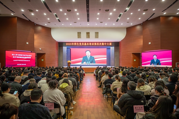 12月19日,我校举行2025年师生党员基本培训第四次集中培训课。全校党员集中收听收看中央党校(国家行政学院)党的建设教研部副主任祝灵君教授关于《深入学习贯彻习近平总书记关于党的建设的重要思想》的专题报告视频。本次集中培训主课堂设在三江会堂,学术报告厅、南校区、东校区分别设置了分课堂。全校近1000名师生党员参加了集中培训。理事长、党委书记封超年主持培训并讲话。