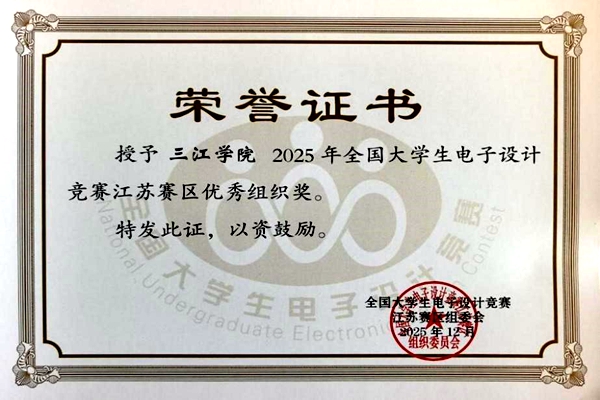近日,2025年全国大学生电子设计竞赛江苏赛区优秀组织奖评选结果正式公布,我校首次荣获“全国大学生电子设计竞赛江苏赛区优秀组织奖”。