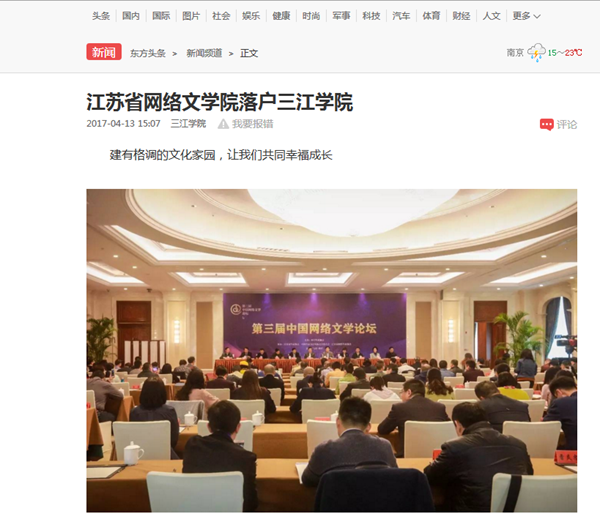 东方头条:《江苏省网络文学院落户三江学院》