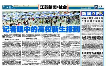(《新华日报》关于我校新生入学绿色通道报道的截图)
