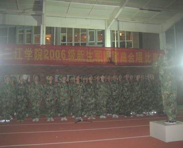 9月13日晚7点30分,由我校2006级新生军训团主办、校团委承办的“三江学院第二届新生军旅歌曲合唱比赛”在校田径场如期举行。2006届新生军训团的马广峰团长、刘晓龙参谋长、学工部的周学军副部长以及校学生会文娱部、大学生艺术团和合唱团的负责人担任了本次比赛的评委工作。全营共有14支代表队报名参加了比赛。经过1个多小时的激烈角逐,高职院代表队以92.86的高分力压群雄,夺得一等奖。电子系和机械系代表队获得二等奖,经济系、市场营销系和计算机系代表队获得三等奖,日语系代表队因其高昂的精神面貌获得“最佳精神面貌奖”,经济系和高职院获得优秀指挥奖。三营因组织工作出色获得“优秀组织奖”。