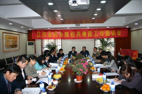座谈会上,民办院校团委书记就各自院校团学工作的发展现状进行了坦诚地介绍,我院团委汇报的《坚持党建带团建 推荐团建创新 努力开创思想政治教育工作新局面》得到与会代表的认同。民办院校的团学工作是民办院校工作的重要部分,是事关民办院校大学生思想政治工作的关键所在,民办院校的团学工作在组织构成、人员安排、经费投入和活动开展等方面都具有自身的特点;同时对目前民办院校团建、党建带团建等工作存在的主要问题进行了热烈讨论和交流。龚亲华部长的简明扼要点评更是加深了与会代表对民办高校共青团工作的认识。大家明确了今后将进一步做好民办院校团学工作,进一步促进民办院校大学生思想政治工作的发展,进一步用团学工作的实际成绩维护民办院校的稳定和促进民办院校的发展,为实现“全面达小康,建设新江苏”的宏伟目标做出自己的贡献。