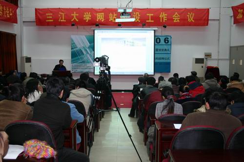 12月9日下午,我校网站建设工作会议在图书馆演讲厅召开。陈万年校长、骆志斌常务副校长、王芝庆副校长以及各院系、部处负责人以及网管员、信息员等共近百人出席。会议旨在推动学校信息化建设,建设“数字化”校园,以全新的面貌迎接明年的本科评建工作。会议主要议题是:关于校园网站第二次改版后的充实和提高问题。骆志斌常务副校长主持会议,宣传部吴江向与会人员作了学校网站建设现状的展示和介绍。随后,党委宣传部长王勇向大会作了《关于校园网站充实、提高中的几个问题》的报告,详细分析了我校网站建设存在的问题和充实、提高的意见。现代教育技术中心主任曾凡捷作了《再论三江网站群建设的技术支撑》的报告。陈万年校长在会上发表了重要讲话,他指出:网站建设是高校核心竞争力的重要组成部分。陈校长就包括校园网站建设在内的校园信息化建设提出了许多指导性意见。他建议考虑设立中心数据库,实现校园信息资源共享。他说,互联网已经成为我们学习的最好的手段,各院系、部门负责人务必高度重视,扎扎实实地象我们抓教学工作,抓迎评创建工作一样抓到实处。正副院长、主任中要有一位分管网站工作,再明确一个网管员。要加强学习,提高政治能力、文字能力和技术水平,要保证外面访问我们的网页有很快的速度。只要管理好、建设好、引导好,我们的网站就一定会成为我校一个重要的宣传窗口和学习渠道。骆志斌常务副校长在会议结结束时作了补充讲话,建议各院系把网站建设作为一把手工程深入扎实地做好。