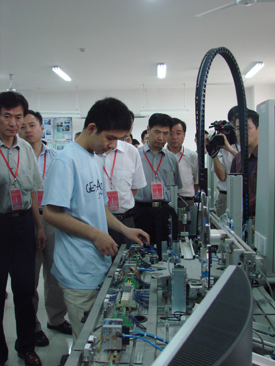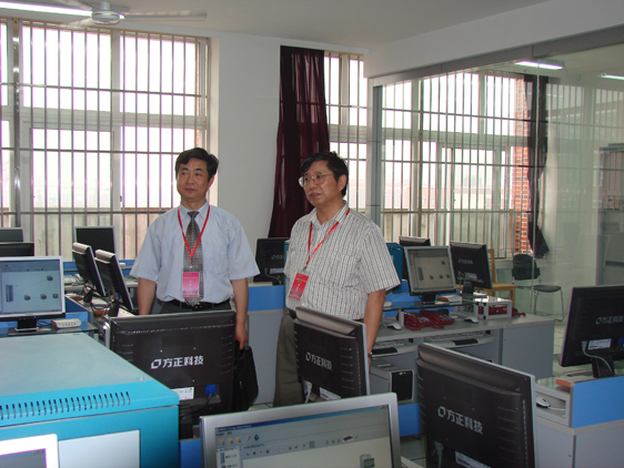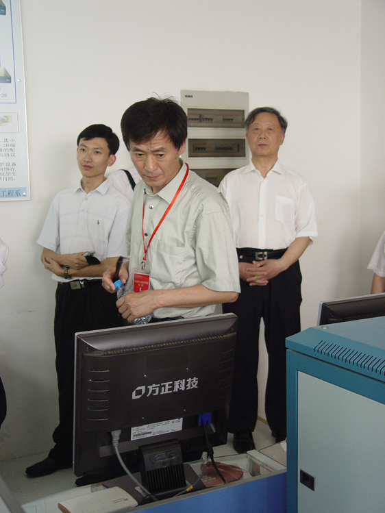28日下午14:50,专家们在我校电工电子实验中心集中,听取了校产设备处处长曾凡捷对我校实验室建设总体情况的介绍。接着,电工电子实验室的李桂安老师向专家们介绍了实验室建设的基本情况,专家们对我校自己研发的电子技术试验箱很感兴趣,因为此试验箱与同类试验箱相比,既节省了资金,又增加了试验项目。在西门子自动化示范实验室听取汇报时,专家们比较关心学生的操作培训事项,讲解的老师就专家们感兴趣的问题做了详细回答。专家们还询问了自动化方面的学生毕业设计情况,并对德国Festo公司生产的MPS控制对象很感兴趣。随后专家们来到计算机基础教学部机房,听取了徐世宏老师对机房和实验室建设情况的汇报。专家们详细询问了该实验室的网络和机房管理情况,并与现场进行实践操作训练的学生交谈,询问了学生实践操作课的学习情况。专家组组长易佑民教授很关心机房的网络能否保障正常的教学需要等情况,并专门做了询问。