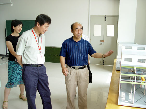 5月29日上午9:50—10:50,本科教学工作水平评估专家夏鹭平教授走访了我校建筑系。夏鹭平教授首先参观了建筑系位于新实验大楼的建筑模型实验室和建筑技术实验室,这两个实验室都是为模型课而设置的,是建筑系实践教学的一个组成部分。建筑系加强徒手草图能力、建筑设计能力的培养、计算机绘画能力的培养,还设立了专门的评图室,将学生设计的作品图直接悬挂在黑板上进行讲评,对学生实际设计能力的提高作用很大,得到了夏鹭平教授的称赞。