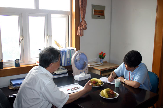 5月30日上午,教育部本科教学工作水平评估专家侯建军教授于宾馆写材料。
