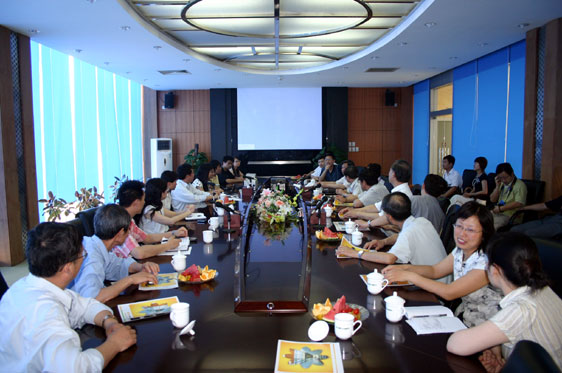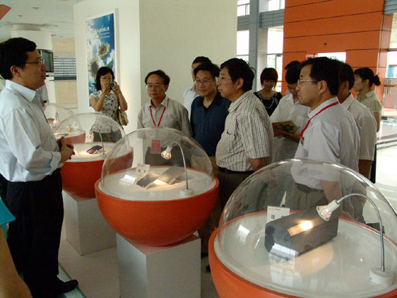 赵建华总经理首先在公司展厅里向专家们介绍了太阳能硅料、太阳能电池片、太阳能交通指示灯、太阳能气象站及太阳能生态社区等展品及模型。紧接着,赵建华总经理带领评估专家来到中电电气(南京)光伏有限公司的厂区,实地参观了生产车间及生产线。随后,赵建华总经理在公司会议室致欢迎辞,对专家们的到来表示热烈的欢迎,并希望专家们就学生的实习实训多提宝贵意见。专家们在赵总经理和骆志斌副院长等人的陪同下,兴致勃勃地观看了介绍中电电气(南京)光伏有限公司创办及发展历程的专题短片。