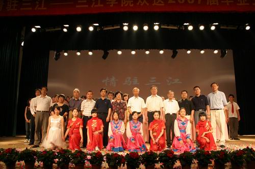 6月11日晚,欢送2007届毕业生晚会在三江会堂举行,离晚会开场还有十分钟,伴随着幻灯片真切动人的毕业告白,三江会堂中就弥漫着浓浓的惜别之情。校长、党委书记陈万年和常务副校长骆志斌、副校长叶俊、副校长王芝庆、副校长陈云棠等校领导光临晚会现场,副校长、党委副书记陈云棠为晚会致开幕辞,对毕业生圆满完成学业表示热烈的庆祝,对同学们的未来表示衷心的祝愿。