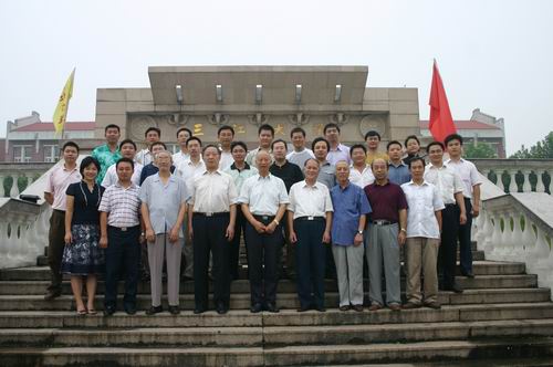座谈会开始前,陈万年校长等校领导同各位校友在校门口一起合影留念。