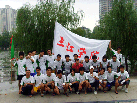 9月21日晚,2007中国南京·长江国际旅游节隆重开幕,这是继梅花节后,南京的又一个具有国际性的重大节庆活动。作为旅游节的重头戏,备受关注的“水木秦淮”长三角旅游城市南京龙舟邀请赛于23日在南京外秦淮河与广大市民见面。龙舟邀请赛的开幕式邀请到上海、杭州、宁波、绍兴、湖州、金华、苏州、无锡、常州、镇江、南通等长三角城市及黄山市的部分副市长,以及各市旅游部门负责人参加。比赛队伍来自10多个城市的30支代表队。三江学院龙舟队也受邀参加了本次比赛, 比赛中我校健儿不畏强手,积极向上,努力拼搏的精神受到了主办方的一致好评,获得了荣誉道德奖,为我校争得了荣誉。