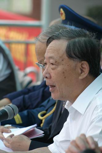 陈万年校长随后发表重要讲话,他说,“尊敬的解放军南京军区空军94840部队的各位领导、教官们、亲爱的老师们、同学们,今天,我们在这里隆重地举行2007级新生开学典礼暨军训汇报表演,在此我代表学校理事会、校行政、 校党委和全体师生员工,对2007级新同学成为三江大家庭成员表示最热烈的欢迎!”陈校长代表校领导向同学们取得的成绩表示热烈祝贺!向十几天来不辞辛苦圆满完成军训任务的解放军教官同志们,表示亲切的慰问和衷心的感谢!他在讲话中简要回顾了我校的办学历程和取得的成绩。接着,对同学们提出了三点希望:第一、立定志向,明确目标 。他说,在今天的开学典礼上有两个问题我提议同学们应该自己问问:第一,到三江学院来干什么?第二,将来出去做什么样的人?希望同学们能深入地思考,努力地实践,力争把这两个问题回答好。二、勤奋学习,扩充知识 。三、勇于实践,提高素质。他希望同学们要在学习实践过程中培养创新意识,塑造创造精神,积极开展创新、创业和创造活动,成为一个具有创新精神和创新能力的优秀人才。