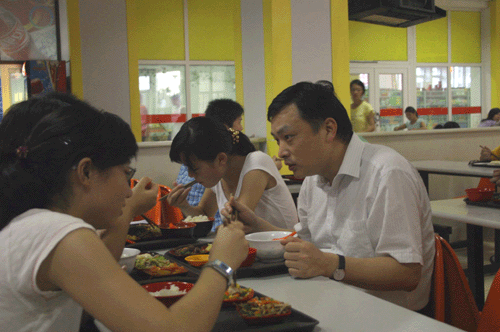 17时许,孔局长首先来到学生食堂,深入实际了解我校食堂饭菜的价格情况,并与经济系的几名学生共进了晚餐。