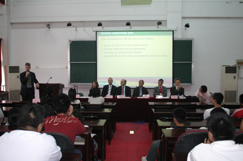 10月8日上午,荷兰SAXION大学一行7人由该校外事处处长Chris先生领队抵达我校访问。我校校长陈万年、副校长王芝庆、国际处处长黄克明等与来宾就合作办学事宜进行了磋商,双方就互派专业课教师问题达成了一致意见。随后荷方计算机信息通讯与管理系的负责人Rik先生与我校王芝庆副校长沟通了各合作科系的具体要求。下午代表团会见了中荷合作项目的全体同学,并现场回答了同学们的提问。
