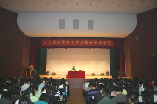 叶俊副校长说,这个讲座具有很特殊的意义,第一,这个讲座适逢我们党的第十七次全国代表大会胜利闭幕之际;第二,我们的“嫦娥一号”探月卫星刚刚上天,所以具有很重要的意义。讲座分四个部分:科学的人生观和世界观;为何要加入中国共产党;怎样做一名合格的共产党员;怎样早日加入中国共产党。叶校长用自己的亲身经历,给学员们生动地讲述了我们党所走过的艰辛历程。她说到如今我们党逐步摸索出一条符合中国实际的社会主义发展道路,祖国发展形势一片大好,学员们要珍惜来之不易的大好环境,努力学习,抓住机遇,把个人的命运与国家的命运紧密地结合在一起,踏踏实实做好每件事,最后一定会梦想成真,成为一名光荣的中国共产党员。