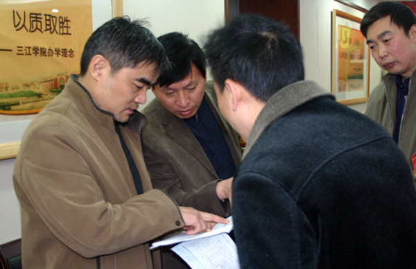 2007年11月29日下午15:30分,南京市依法治理检查组副组长张波(南京市司法局宣传处副处长)与检查组成员王家淮(南京市依法治理处副处长)、张胜华(南京市建委政策规划处副处长)、娄宗景(南京市社法办主任)一行,在雨花台区政法委“610”办主任赵祝生、雨花台区建设局副局长施晓明、雨花台区司法局法治宣传科科长汪晨,以及铁心桥街道司法所尹寿勇、陈正明等同志的陪同下,就雨花台区政府向市委政法委申报我校为“民主法治单位”一事,对我校依法治校创建工作进行了全面检查。我校王芝庆副校长、保卫处副处长凌刚、校办综合科科长李云涛、保卫处办公室主任陈大胜等相关人员给予了热情接待。